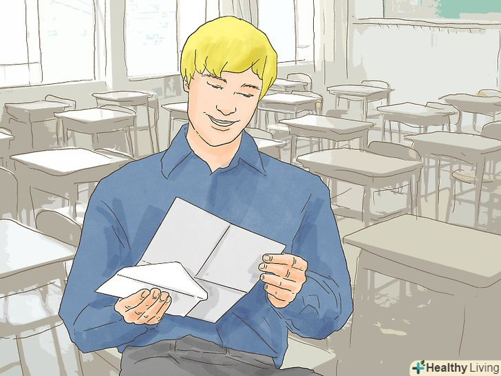 Підготуйтеся до його реакції. хотілося б вірити, що ваші почуття взаємні, і що ваша записка-це початок чудових відносин. Однак не завжди все відбувається саме так, тому вам слід бути готовим до відмови . Зрозумійте, що ваш обранець прийняв своє рішення, і не намагайтеся змінити його. Цілком нормально сумувати або засмучуватися. Дайте собі час прийняти ситуацію, а потім відпустіть думку про відносини з цією людиною і рухайтеся далі. [7]