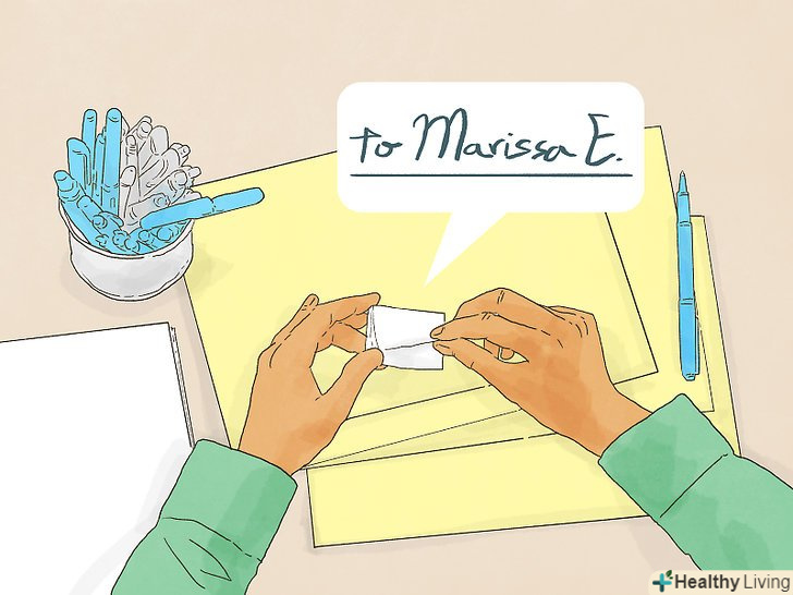 Вкажіть одержувача. можна скласти записку в химерній формі або помістити її в запечатується конверт. Обов'язково вкажіть ім'я людини на зовнішній стороні, щоб не виникало ніяких питань з приводу того, кому призначається записка. Крім того, додайте першу букву його прізвища або прізвище повністю, якщо у вашій школі є ще одна людина з такими ініціалами.- Наприклад, напишіть « " Олександрі м.»