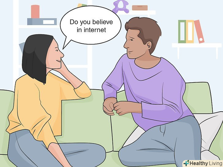 Говоріть про передбачувані обставини. Якщо б вам довелося вибирати між сліпотою та глухотою, що б ви вибрали? Чи хотіли б ви існувати на самоті, поїдаючи шпинат і слухаючи Різдвяні наспіви по вісім годин на день залишок свого життя? Постарайтеся знайти цікаві, веселі або складні ситуації, і запитайте свого хлопця, що йому подобається найбільше. Коли він відповість, попросіть його обґрунтувати свою думку.- Вступите в суперечку. Надайте точку зору, протилежну думці бойфренда, щоб змусити його зробити переоцінку своєї думки. Доведіть, що ви намагаєтеся внести зацікавленість в розмову, і не хочете сперечатися з хлопцем на кожному кроці.