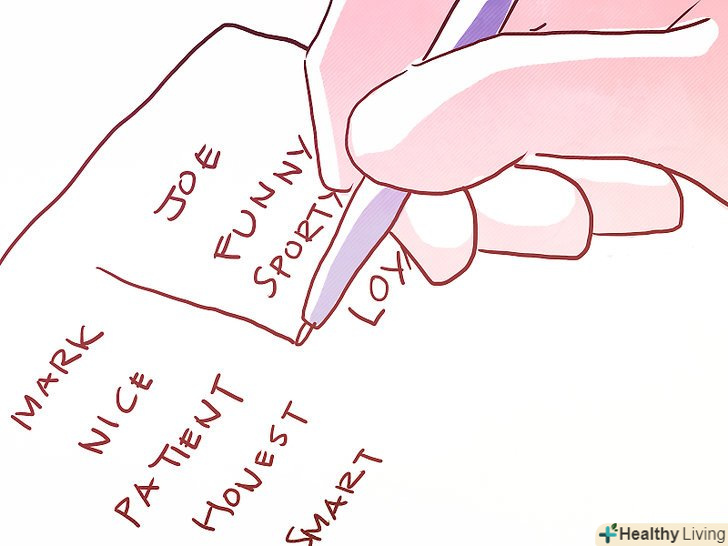 Запишіть всі свої думки про першу людину, поки вам не стане нічого писати. Запишіть всі свої думки про другу людину, поки вам не стане нічого писати. Розмірковуйте над наступними питаннями:- Які риси характеру мають для вас значення в майбутньому партнері, в цілому?