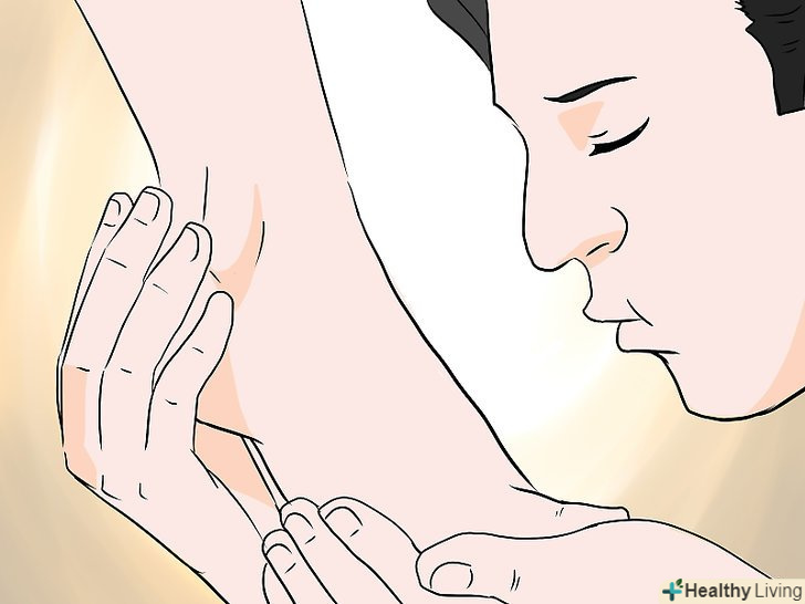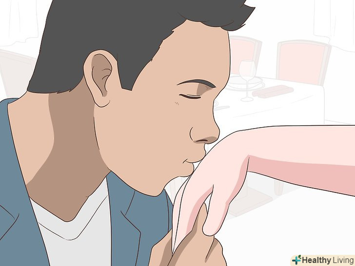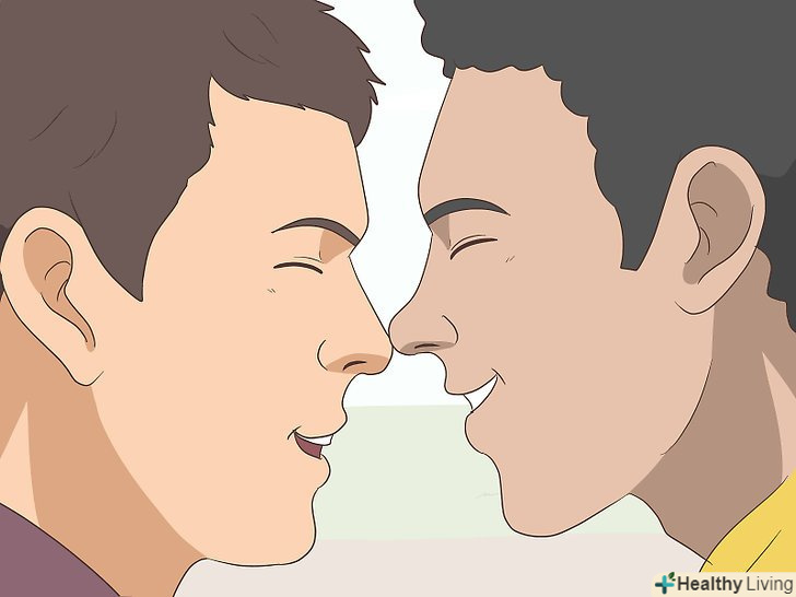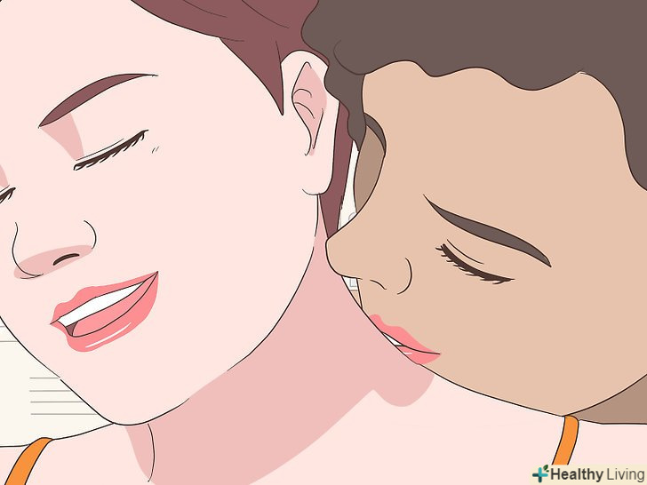 - Здивуйте свого партнера поцілунком зверху-вниз. Поки ваш партнер сидить, встаньте позаду нього і ніжно відхиліть назад його голову. Потім нахиліться, і почніть цілувати його зверху вниз. Будьте обережніше і не стукніться зубами; як тільки освоїте цей поцілунок – можете проявити більше агресії, і навіть спробувати французький поцілунок.