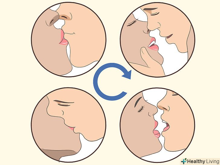Поцілунок з підборіддям. підтримуйте підборіддя партнера трьома пальцями. Нахиліть його голову в правильному напрямку. Продовжуйте тримати його під час поцілунку. Пам'ятайте, що ви можете використовувати будь-який тип поцілунку. Поки ви тримаєте підборіддя, цілуйте взасос, або додайте будь-які елементи в ваш поцілунок, використовуючи губи і язик.