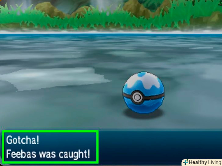 Продовжуйте ловити рибу, поки не знайдете Фібаса. після цього його необхідно послабити здатністю «помилковий Удар» або «стримування», а потім паралізувати або приспати.- Якщо зараз ніч, використовуйте даскбол, але Фібаса можна зловити і дайвболом. Шанс упіймання Фібаса досить високий, так що у вас не повинно виникнути з цим ніяких проблем.