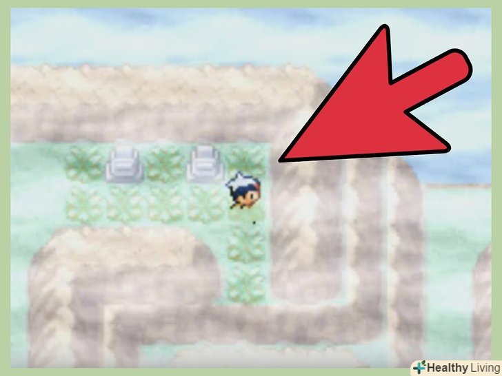 Пройдіть печери і підніміться на третій поверх. піднімаючись вище, ви зустрінете різних тренерів і персонажів, які оплакують тут своїх покемонів. Проходячи через печери, ви в будь-який час можете потрапити в битву. [2]- Коли дійдете до третього поверху, увійдіть в південні двері.