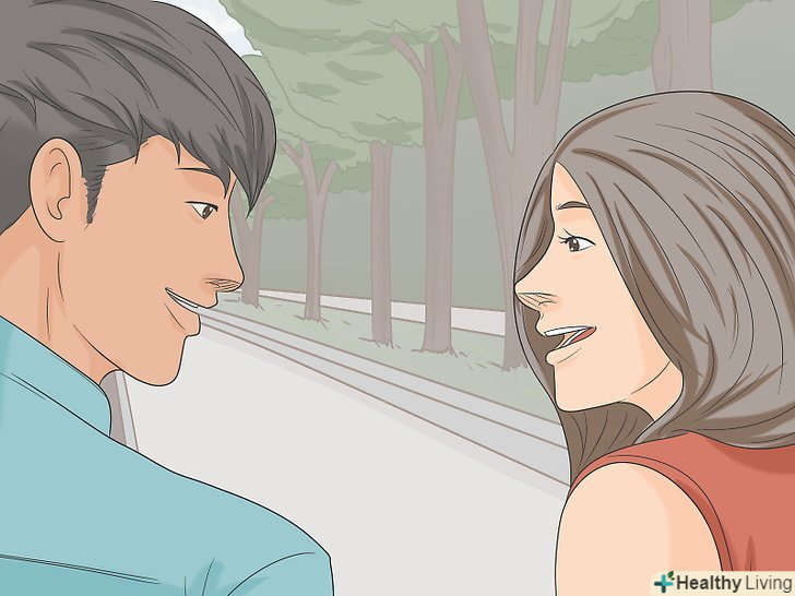 Встановіть конструктивну зв'язок з людиною. Вам може бути дискофмортно відкрито розповідати про свої справжні інтереси і почуття, особливо якщо вас раніше ображали в любові. Однак якщо ви хочете розвинути здорові, щасливі романтичні відносини, конструктивна комунікація надзвичайно важлива. [12]- Говоріть про свої ідеї, цілі та інтереси. Можливість ділитися з іншою людиною тим, що для вас важливо, — один з головних моментів романтичних відносин.