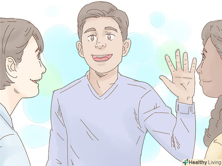 Проявіть себе як компанійської людини. це не означає, що ви повинні кричати з даху, що ви шукаєте любов, але прийміть заходи, щоб люди побачили вашу доступність і хотіли б продовжити спілкування з вами, якщо намічається такий шанс.- Оцініть свій зовнішній вигляд. Коли ви шукаєте любов, одягніться якнайкраще. Не змушуйте себе одягати те, що сковує вас. Підкресліть свою впевненість і унікальність чистою стильним одягом і приємним виразом обличчя. Додайте крапельку духів або одеколону, і ви зможете подати правильний сигнал.