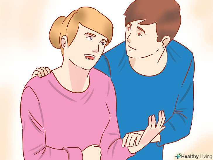 - Проявляйте ніжність — наприклад, цілуйте партнера в лоб. Це нагадає партнеру, що ви готові бути поруч. Цілуйте його протягом дня, розминайте шию і плечі. Розмовляючи або прогулюючись з партнером, обійміть його за плечі або покладіть руки на талію.