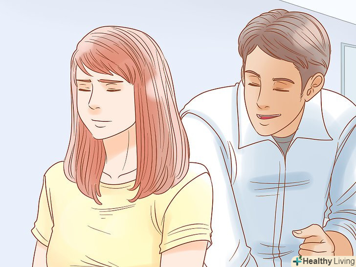 Спробуйте взяти себе в руки за допомогою глибокого дихання, якщо ви схвильовані. хвилюватися перед розмовою з дівчиною цілком природно! В такому випадку спробуйте зробити глибокі вдихи. Закрийте очі і вдихайте через ніс протягом 4 секунд. Потім затримайте дихання ще на 4 секунди і видихайте протягом 4 секунд. Намагайтеся дихати за допомогою живота. Виконайте цю вправу кілька разів, щоб взяти себе в руки. [1]- Також спробуйте підбадьорити себе. Говоріть собі, що вам це по плечу! Погляньте на ситуацію з боку. Що станеться в гіршому випадку? Якщо вона відмовиться говорити з вами, буде трохи неприємно, але це зовсім не кінець світу.