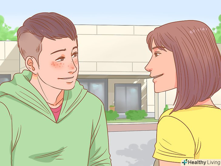 Відповідна посмішка. посмішка-хороша ознака того, що дівчина не проти поговорити з вами. Посміхніться їй при зустрічі — це покаже, що ви раді її бачити. Якщо дівчина посміхнеться у відповідь, можна ризикнути і почати бесіду. [7]- Зверніть увагу на очі, щоб оцінити щирість посмішки. Якщо посмішка непідробна, то вона також відіб'ється в очах. Якщо ж дівчина лише хоче бути ввічливою, посмішка буде здаватися натягнутою. [8]