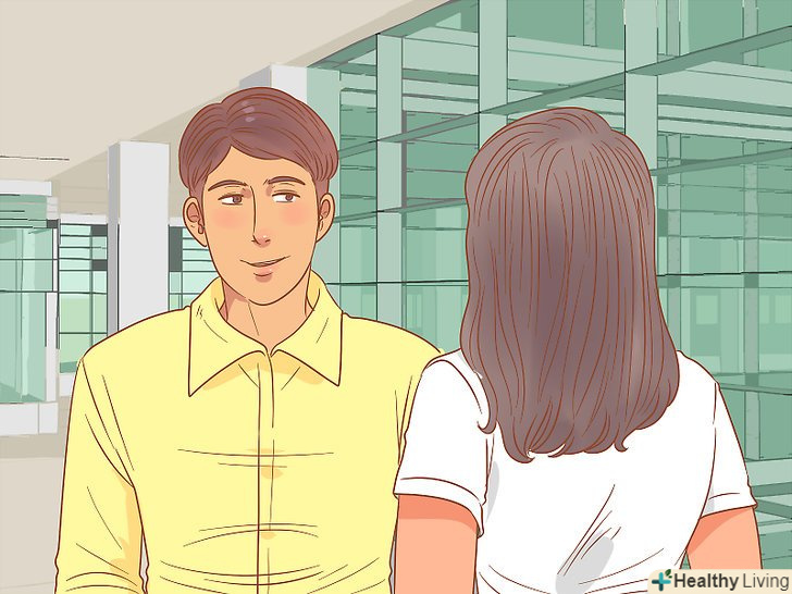 Тривалий погляд. не потрібно бентежити дівчину пильним поглядом! Але якщо ви все ж зустрілися поглядами, дивіться дівчині в очі протягом декількох секунд і продовжуйте посміхатися. Дівчина не відвела погляд? Це можна трактувати як ознака інтересу. [9]