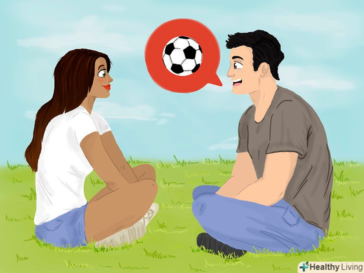 Використовуйте спільні інтереси як відправну точку. якщо ви хочете краще пізнати хлопця, почніть розмовляти про все, що у вас є спільного, від відносин у ваших сім'ях до улюблених спортивних команд. Якщо у вас не так багато спільного, займіться тим же, що і він — можливо, вам сподобається його захоплення. І якщо ви хочете зробити вигляд, ніби його улюблена спортивна команда подобається вам більше, ніж це є насправді, то в цьому немає нічого страшного.- Більшість хлопців любить говорити проСпорті.якщо вам обом подобається один вид спорту або одна спортивна команда, можете почати розмову про це. Якщо ні, прочитайте щось про його улюблену команду і невимушено поділіться з ним деякими фактами.