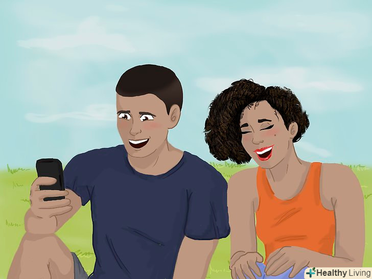 Смійтеся над одним і тим же. знайдіть щось спільне, про що ви можете сміятися-це може бути щось, чого ніколи не помічає один з ваших спільних друзів або моторошний плакат на стіні вашого математичного класу. Якою б не була причина посміятися, ви будете розвивати більш глибокий зв'язок з хлопцем, і покажете йому, наскільки веселою ви можете бути.- Якщо ви знайдете щось, про що ви обидва можете сміятися, це зблизить вас.