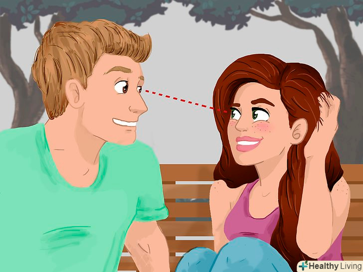переривайте зоровий контакт час від часу. Подивіться йому в очі, злегка посміхніться, а потім відверніться. Так він зрозуміє, що ви сором'язливі, але зацікавлені в ньому.