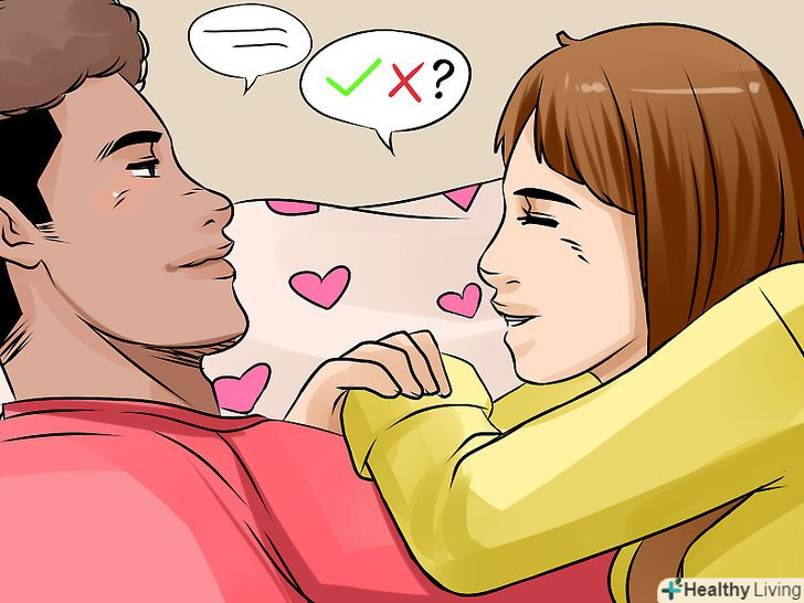 Розкажіть про те, що Вам подобається. вам потрібно бути відкритим зі своїм партнером з приводу свого ставлення і почуттів до сексу. Крім того, потрібно обов'язково запитати про те, що подобається вашому партнерові і чого він хоче в ліжку. Сором'язливість або скромність принесе незручність і боязкість вашому партнерові, що може тільки погіршити досвід близькості для вас обох. Дозвольте собі насолодитися досвідом і покажіть своєму партнерові, що вам теж це подобається. [13]- Не засуджуйте свого партнера за те, що йому подобається. Вам обом може бути страшно озвучувати такі потаємні думки, тому вислухайте їх, не перебиваючи. Якщо вашому партнерові подобається те, що вам не подобається, дайте йому знати, що вам це не цікаво, але так, щоб він не відчув себе дивною або поганою людиною через свої бажання. [14]