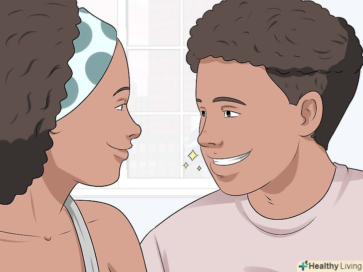 Посміхайтеся своєму партнерові. посміхайтеся йому, коли утримуєте зоровий контакт, і кожен раз, коли проводите з ним час. Якщо ви будете напружені, це буде видно по вашому обличчю, що може передати невірний посил. Вам не потрібно постійно посміхатися, однак це допоможе людині відчути, що вам з ним комфортно. [15]