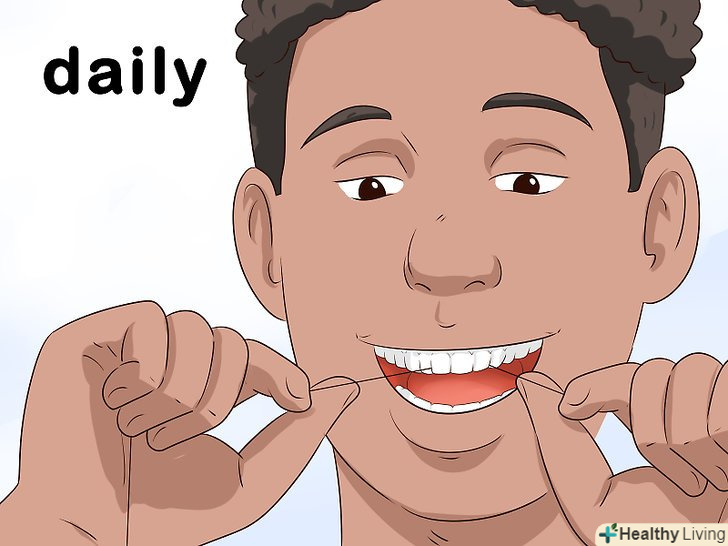Щодня користуйтеся зубною ниткою. використання зубної нитки є важливою частиною гігієни порожнини рота. Зубна нитка дозволяє видалити застряглі частинки їжі, запобігти неприємний запах з рота і карієс. Користуйтеся зубною ниткою як мінімум раз в день, а в ідеалі — вранці і ввечері. Робіть це акуратно, щоб не викликати кровоточивості ясен. [2]- Якщо ясна сильно кровоточать, зверніться до стоматолога. Кровотеча ясен може бути ознакою гінгівіту.