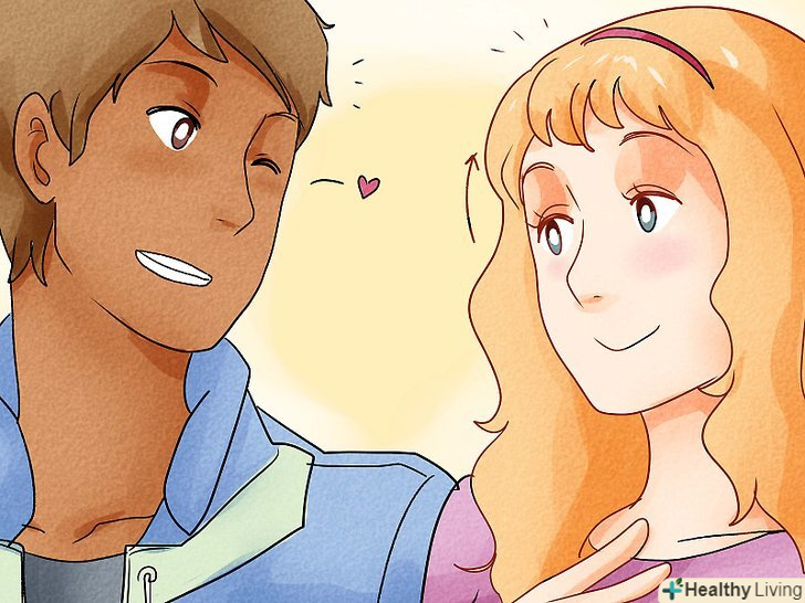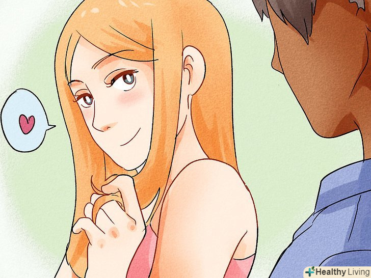 Спілкуйтеся за допомогою очей. коли справа доходить до мови тіла, ваші очі стають потужною зброєю. Вони можуть показати інтерес і також точно можуть показати вам, чи зацікавлений він. Зоровий контакт підвищує частоту серцевого ритму і вивільняє гормони, пов'язані з любов'ю і бажанням. [1]- Зупиніть свій погляд на хлопця, який вам цікавий, якщо ви ще не знайомі з ним, або між вами поки що не було розмови. Покажіть, що Ви оцінюєте його-пильний погляд демонструє тривалий інтерес.