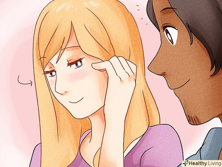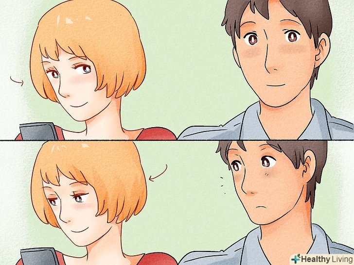 Зовсім трохи піднімайте брови, коли він вам посміхається, киває, підморгує і т. Д.робіть це тонко, лише достатньо для того, щоб він помітив зміну у виразі вашого обличчя, але щоб це не виглядало неприродно або надто. Дуже важливо виглядати задоволеною, а не так, ніби вам все це огидно. Але пам'ятайте, що не можна перегравати – він вирішить, що ви занадто зацікавлені.