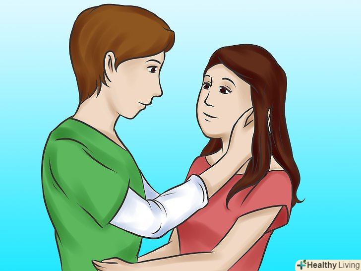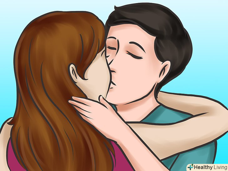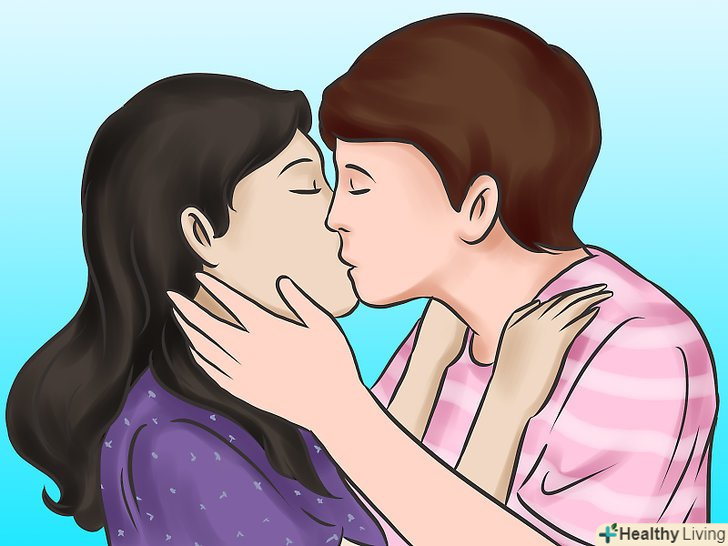 Наблизьтесь для поцілунку. все повинно бути просто, особливо, якщо це ваш перший поцілунок. Це означає-ніякої мови і незвичайних рухів; просто нахиліть злегка голову набік, повільно потягніться до партнера і подаруйте йому / їй кращий поцілунок в світі! Ви можете покласти руку на потилицю партнера, якщо хочете.- Якщо ви зустрінете наснагу з боку партнера, то можете перетворити простий чмок в довгий, більш чуттєвий поцілунок. Однак робіть це лише в тому випадку, якщо впевнені в тих натяках, які ви отримали. Якщо сумніваєтеся, зробіть поцілунок коротким, - краще залишити людину хотіти ще, ніж змусити шкодувати про поцілунок з вами.