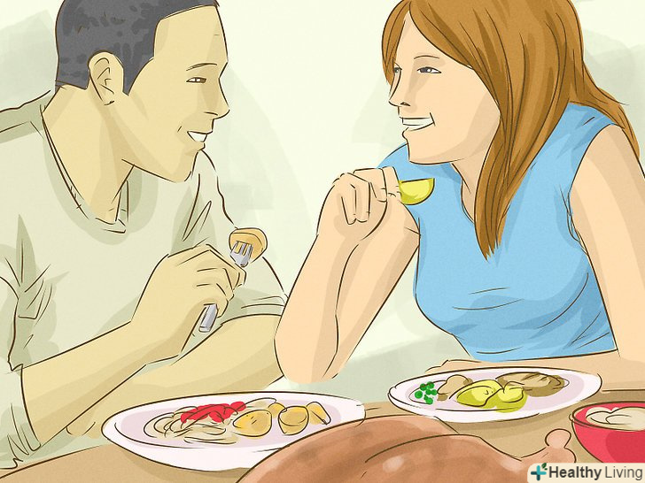 - Якщо ви хочете повечеряти разом, то спочатку дізнайтеся смакові переваги дівчини, а також не тягніть з вибором закладу до останнього моменту. Виберіть місце, зарезервуйте столик і повідомте дівчині кращий варіант наряду — вечірній або повсякденний. Не слід вибирати галасливі місця на зразок спортивних барів, в яких ви будете погано чути один одного. [3]