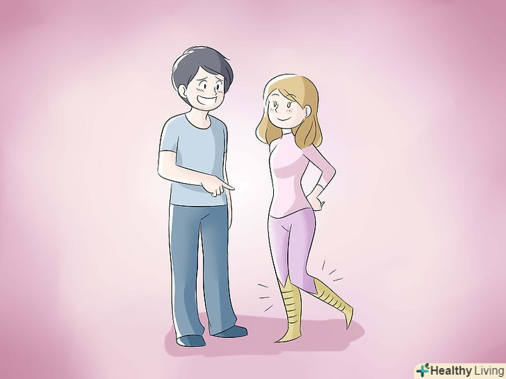 Дражніть її. після того, як ви відчуєте себе комфортно один з одним, ви можете почати трохи дражнити дівчину. Дайте їй відчути, що ви просто добре проводите час, а не намагаєтеся занадто сильно справити на неї враження. Це не означає, що ви не повинні залишатися добрим до неї, але ви так само можете жартувати над нею, якщо таким чином ви не образите її і зробите все правильно. Просто тримайтеся грайливо і легко. Дражніть її за те, що вона носить рожевий. Висміюйте її модні чоботи, в той же час, даючи зрозуміти, що вони вам насправді подобаються. Смійтеся над одержимістю її двома кішками.- Поки ви обидва дражните один одного, ви можете завоювати жінку. Не дозволяйте цьому бути занадто одностороннім.