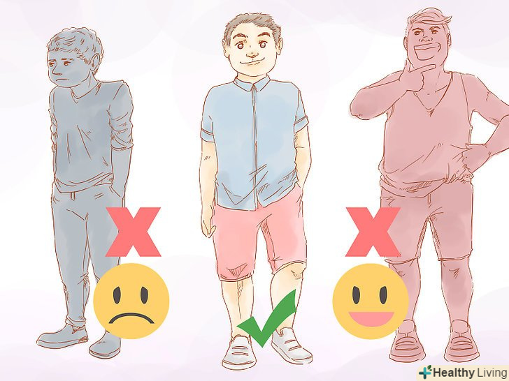 Будьте впевнені в собі. Вам слід вірити, що ви гідні перебувати поруч з цією дівчиною. Більшість дівчат нічого спільного не хочуть мати з людьми, які постійно себе принижують. Поважайте себе, але не варто занадто задаватися. [27] Знайте, в чому ви хороші. Не варто кричати про такі речі або виставляти їх напоказ, але візьміть їх на озброєння і використовуйте час від часу.- Різниця між дійсно впевненістю в собі і прикиданням в тому, як ви насправді думаєте про себе. Справжня впевненість у собі означає, що Ви знаєте, хто ви, і ви відчуваєте себе комфортно і щасливо. Прикидання часто базується на тому, що ви відчуваєте потребу конкурувати або принижувати когось, щоб відчувати себе впевненим. По-справжньому впевненим у собі хлопцям не треба будувати з себе когось або вести себе як хуліган, щоб відчувати себе крутим. [28]