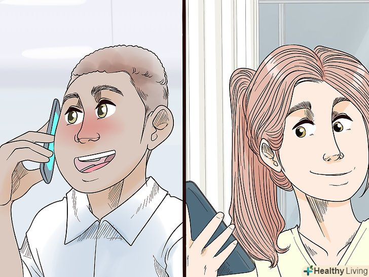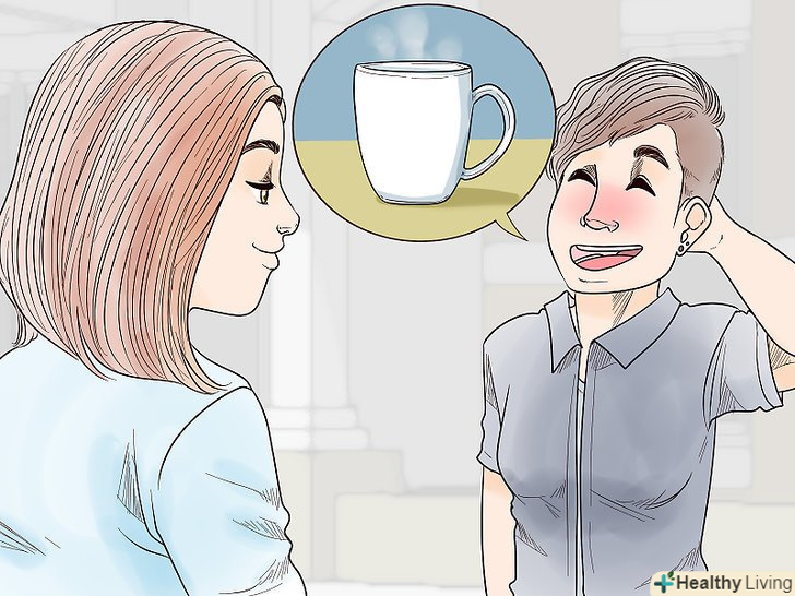 Продовжуйте намагатися. Якщо ви помітите, що натяки стали з'являтися і з її боку, значить, ви рухаєтеся в правильному напрямку. Але якщо до неї насилу доходять ваші натяки, постарайтеся сильніше. Намагайтеся робити це трохи більш відкрито, так як деякі дівчата звикли багато фліртувати.- Залиштеся з нею наодинці. Це дуже важливо. Якщо ви ніколи не залишаєтеся десь удвох, пора рухатися до цієї мети. Ваше завдання-зробити так, щоб це не звучало як запрошення на побачення, але виглядало все саме так. Скажіть, що ви сидите в кафе і хочете, щоб Класна дівчина допомогла вам відволіктися від навчання, а не те, що хочете удвох попити з нею кави.