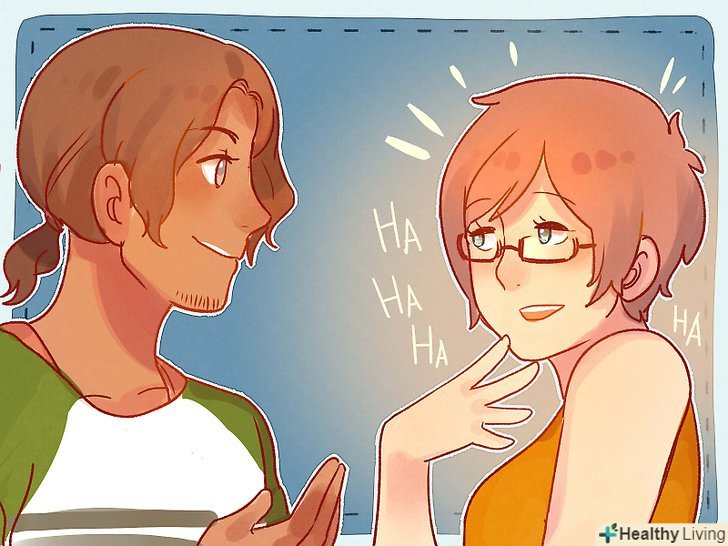 Слідкуйте за мовою її тіла, коли вона сміється. хоча сам по собі сміх не є ознакою романтичного інтересу, але те, що відбувається, коли вона сміється, може вказувати на її почуття до вас. Коли чоловік зацікавлений жінкою, він, як правило, намагається скоротити відстань між ними, тому нахиляється до дівчини, коли сміється. Коли жінка зацікавлена в чоловікові, вона має своє тіло так, щоб її позитивні фізичні риси підкреслювалися, коли вона сміється. Дівчина буде сидіти прямо і тримати поставу, що зробить її більш привабливою або спокусливою. [6]