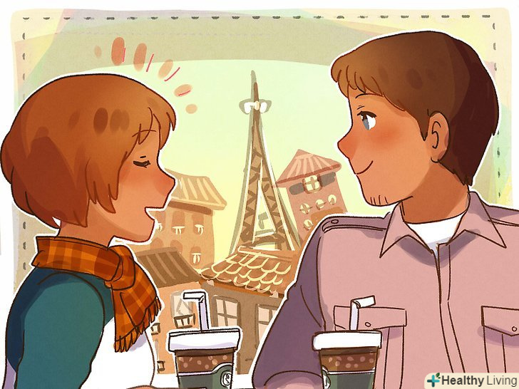 Запропонуйте їй зайнятися чимось, що б сфокусувало вашу увагу на ній. можна відправитися на вечерю або просто в кафе на чашечку кави, щоб поговорити. У вас повинно бути достатньо часу, щоб ви могли спокійно посидіти один навпроти одного і поговорити про все на світі. Найкращий спосіб зрозуміти почуття людини-це поговорити з ним, щоб ви могли дивитися на нього і активно слухати. [11]- Чоловіки зазвичай відчувають більше близькості при такій діяльності, коли людина знаходиться з ними поруч, пліч-о-пліч. Наприклад, коли дивляться футбол або випивають. Але коли ви сидите з людиною пліч-о-пліч, вам важче читати його почуття, тому що в такому положенні ви не дивитеся йому в обличчя і не можете активно слухати.