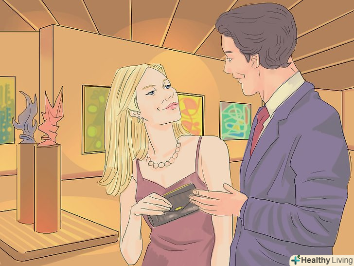 Відвідуйте музеї. рекомендовані експертами виставки залучаються багатих відвідувачів звідусіль. Часто відвідуйте місцеві музеї, щоб підвищити свої шанси зачарувати забезпечену даму своїми знаннями. Ставши постійним відвідувачем музеїв, Ви збільшите можливість спілкування із заможними жінками. А членська карта забезпечить вас запрошеннями на вечірки та благодійні заходи, де ви зможете встановити прямий контакт з жінкою вашої мрії. [9]