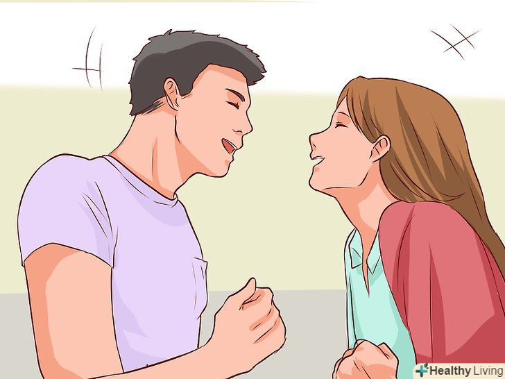 Встановлюйте зоровий контакт з партнером. [9] Сором'язливі люди часто уникають зорового контакту, і хоча це цілком прийнятна і, можливо, навіть бажана поведінка, якщо ви — сором'язливий партнер, то партнер-екстраверт, швидше за все, подумає, що ви холодні і байдужі.- Очі є важливим інструментом спілкування, тому частий зоровий контакт може здаватися виснажливим.