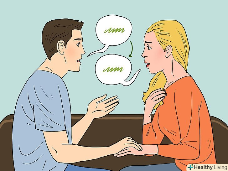 Спробуйте прийом дзеркального відображення. іноді людям важко повністю зрозуміти, що має на увазі партнер. Легко неправильно витлумачити чиїсь слова і в підсумку відчувати злість і біль, в той час як ваш партнер заходить в глухий кут з вашою відповіддю. Дзеркальне відображення-це метод, який може допомогти вирішити цю проблему. Після того як ваша друга половинка скаже вам про свої почуття, повторіть свою інтерпретацію того, що ви почули. Тоді ваш партнер повинен визнати, що він мав на увазі. Попрацюйте і над тим, щоб і ваша друга половина чинила так само. Це допоможе вам двом краще зрозуміти ваші стилі спілкування.- Якщо один з подружжя каже: «Я відчуваю себе самотньо, коли ти йдеш по п'ятницях на зустріч з друзями, а я залишаюся вдома один (одна)», — дзеркальна відповідь повинна бути приблизно таким: «значить, тобі самотньо, коли я по п'ятницях проводжу час з друзями. Я розумію, що це таке".