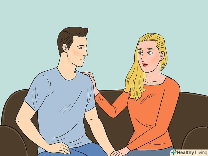 Дивіться один один в очі і торкайтеся один до одного. коли ваш партнер потребує вас, подивіться в його або її очі. Сядьте ближче на дивані. Ці фізичні вирази близькості допоможуть вашій другій половині відчувати себе комфортніше при розмові. До того ж так менше шансів, що вами опанують презирство або гнів.- Ви можете також спілкуватися без слів. Притягніть партнера ближче до себе, щоб обійняти, або покладіть ноги на його або її коліна. Не все повинно вимовлятися вголос.