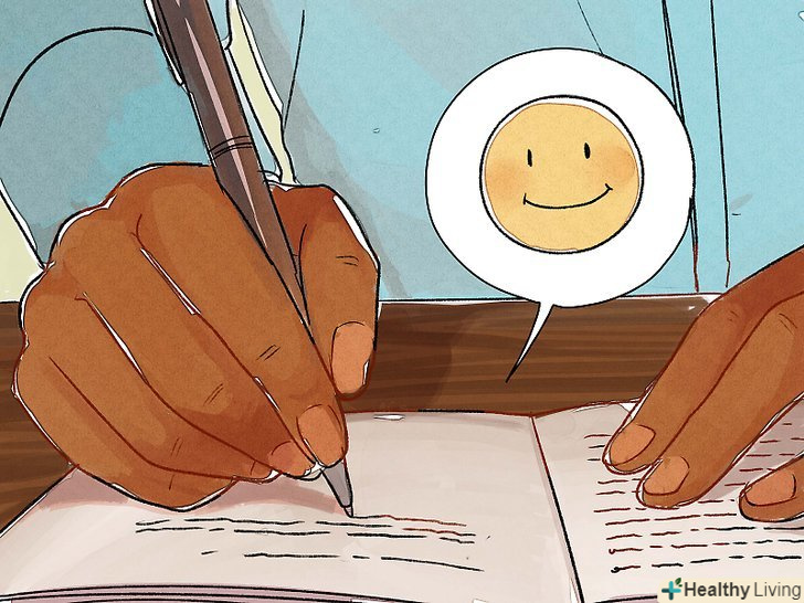 Ведіть щоденник подяки. змусьте себе звернути увагу на хороші і позитивні моменти у своєму житті, які ви часто сприймаєте, як належне – це допоможе боротися з сумом. У щоденнику подяки найкраще писати, кому ви вдячні, і детально розписувати, за що саме. [8]- Пишіть, не думаючи про помилки та граматику. Можна написати повними пропозиціями, а можна написати кілька тез.