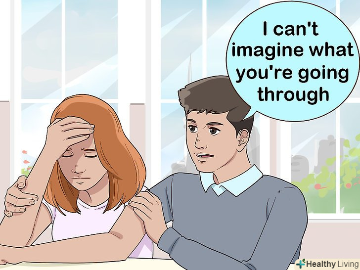 Скажіть їй, що вам шкода, що їй так погано. це мило і просто. Просто скажіть:" мені шкода, що ти проходиш через це", або"Мені шкода, що ти переживаєш таку складну ситуацію". Нехай це і не ваша вина, невелике вибачення покаже, що ви дійсно співчуваєте ситуації і хочете, щоб все було по-іншому. Так їй стане легше, навіть якщо ви не можете нічим допомогти.- Вона може сказати: "ти ні в чому не винен!", а ви можете відповісти: "я знаю, але все одно мені погано від цього". Так вона відчує, що ви дійсно на її боці.