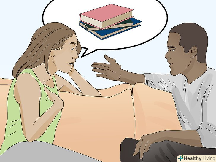 Запропонуйте консультації у фахівця. якщо коханій людині важко змиритися з вашим станом, можете запропонувати разом сходити на консультацію до психолога. Попросіть партнера серйозно задуматися про дану пропозицію, оскільки консультування у фахівця допоможе більше дізнатися про розлад прийому їжі, про те, як підтримати людину з такою хворобою, і про те, як з нею боротися. [15]- Існують групи підтримки для людей з порушенням харчової поведінки. Також існують групи для цілих сімей з подібною проблемою. Проконсультуйтеся з лікарем, психотерапевтом або в місцевій лікарні, щоб дізнатися, чи є подібні групи підтримки у Вашому місті.