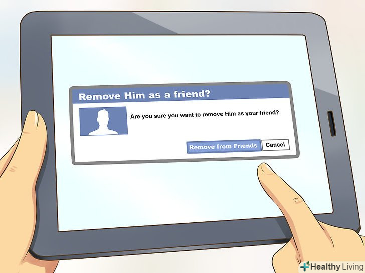 Видаліть цю людину зі списку своїх друзів у всіх соціальних мережах, якими Ви користуєтеся. якщо колишній партнер перебуває у списку Ваших друзів у Twitter, Instagram або Facebook, видаліть його. Ніяка соціальна платформа не повинна зайвий раз нагадувати вам про людину, яка розбила ваше серце. Можливо, навіть варто піти на крайні заходи, переставши тимчасово користуватися соціальними мережами. Крім того, видаліть фотографії, якщо ви вважаєте це за потрібне.- Немає необхідності видаляти фотографії назавжди! Просто видаліть їх зі своєї сторінки, щоб вони не потрапляли вам на очі.