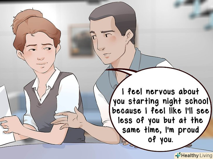 Обговоріть зміни. поговоріть про те, як ці великі зміни впливають на кожного з вас окремо і як вони впливають на ваші відносини в цілому. [7] Дозвольте партнеру повністю висловити всі свої почуття. Ця розмова може бути нелегкою і може спричинити за собою низку подібних бесід. Але необхідно відкрито і ясно спілкуватися зі своїм партнером, коли виникають серйозні зміни.- Будьте чесні з приводу своїх почуттів. Використовуйте пропозиції з "я", щоб висловити свої почуття. [8] Скажіть, наприклад: "я нервую і турбуюся через те, що ти будеш ходити у вечірню школу. Я розумію, що буду менше бачитися з Тобою, чому мені стає сумно. Але в той же час я пишаюся тобою і хочу, щоб ти займався тим, що робить тебе щасливим".