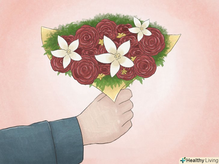 Зробіть їй милий сюрприз або невеликий подарунок, щоб показати, як дбаєте про неї і про її почуття. наприклад, можна подарувати їй шоколадні цукерки, квіти або інші приємні дрібниці — це відмінний спосіб показати дівчині, що ви готові докласти всіх зусиль, щоб загладити свою провину. Якщо ви зустрічаєтеся, можна запросити її на вечерю в її улюблений ресторан-це хороший спосіб поговорити в спокійній обстановці і вирішити цю ситуацію. [11]- Якщо у вас немає грошей, можна зробити подарунок своїми руками — це відмінний спосіб показати дівчині, що ви дбаєте про неї.