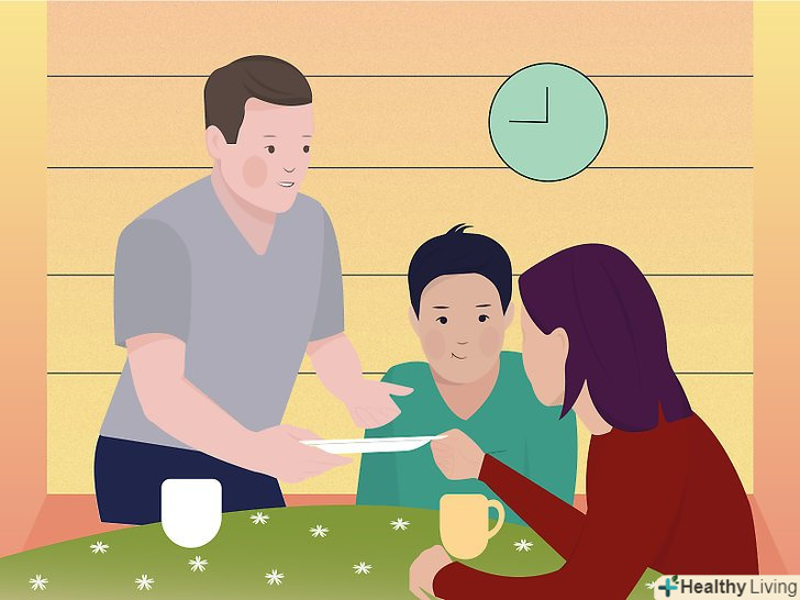 Підтримка поза сім'єю. ніхто не розуміє суті розбіжностей в сім'ї краще родичів. Проте, іноді корисно виговоритися людині, з яким ви не перебуваєте в родинних зв'язках. Покладіться на близького друга, щоб зняти напругу в розмові. [14]- Попросіть кращу подругу зустрітися з вами за чашкою кави, поки вся сім'я буде в зборі. Вам буде корисно відволіктися і поговорити з неупередженою людиною.