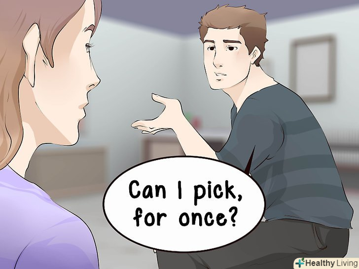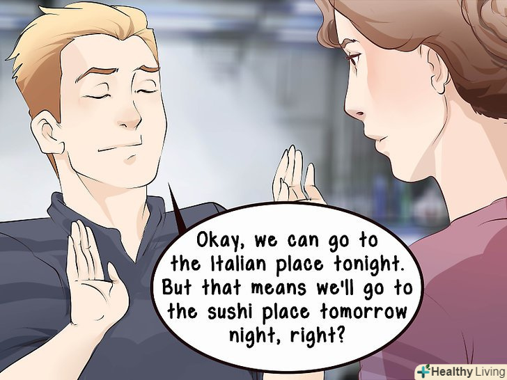 Нагадайте йому, що зараз ваша черга. якщо вам доводиться постійно домовлятися з одним і тим же впертим людиною, то, швидше за все, до цього ви постійно здавалися. Прийшов час тупнути ногою і нагадати людині про все, в чому ви йому поступалися, будь то великі речі або маленькі поступки. Ви можете зробити це без того, щоб людина відчувала себе жахливо, і дійсно показати йому загальну картинку і те, що прийшов час і вам отримати те, чого ви хочете. Ось приклади того, що ви могли б сказати:- "останні 5 разів ми ходили в ресторан, який вибирав ти. Чи можу я сьогодні зробити вибір?"