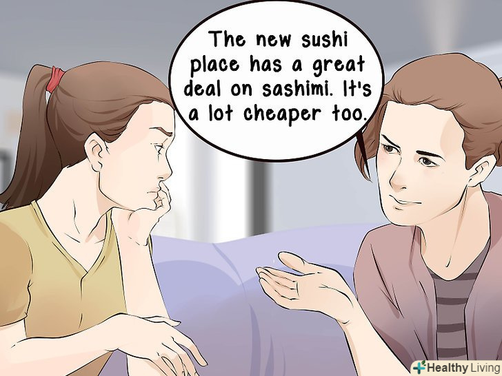 Надайте йому інформацію. вперті люди часто бувають налякані невідомістю. Вони можуть не хотіти робити щось тільки тому, що ніколи не робили цього раніше, і не звикли порушувати звичні моделі поведінки. Чим більше ви розповісте про ситуацію, тим комфортніше людина буде себе почувати. Він зрозуміє, що в тому, що ви пропонуєте, немає нічого страшного, тому що він буде знати, що станеться далі. Ось кілька зразкових фраз, які ви можете сказати:- " у новому суші-барі відмінний вибір сашимі. Це ще й набагато дешевше, ніж італійська кухня. А ще у них приголомшливий величезний телевізор, і ми можемо ще застати кінець гри, поки будемо їсти".