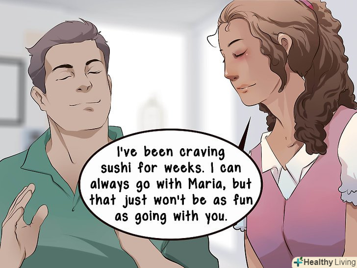 Покажіть йому, чому для вас це важливо. якщо ви небайдужі вашому впертому, він/вона принаймні повинні будуть вислухати, чому речі, про які ви говорите, так важливі для вас. Це допоможе людині побачити ситуацію на загальнолюдському рівні і зрозуміти, що тут мова йде про щось більше, ніж про те, хто правий, а хто ні; мова йде про те, щоб дати вам те, в чому ви дуже потребуєте. Якщо у вас є відносини з цією людиною, показати йому, що це зробить вас щасливими-дуже хороший крок. Ось приклад того, що ви могли б сказати:- " я вже цілий тиждень мрію про суші. Будь ласка, ми можемо піти? Я завжди можу піти з Мариною, але це не буде так весело, як з тобою".