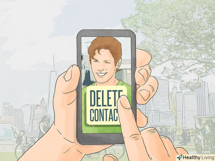 Видаліть його номер зі своїх контактів. якщо ви намагаєтеся забути хлопця (навіть якщо у вас ще залишилися до нього почуття), просто ігноруйте його. Почніть з видалення його номера зі свого телефону. Якщо ви не зможете просто зателефонувати йому або відправити повідомлення, у вас буде менше шансів якось зв'язатися з ним. [9]- Якщо хочете, можна записати його номер де-небудь в блокноті.