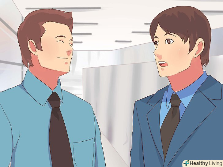 Будьте доброзичливі, але не залучайтеся до розмови. вашому ворогові буде набагато важче бути злим з вами, якщо ви будете проявляти дружелюбність. Вам може бути непросто бути милим з ним-Прикиньтеся, якщо доведеться. Вибийте ворога з сідла, роблячи те, чого він від вас не очікує – це відмінний спосіб послабити конфлікт.- Посміхайтеся і підтримуйте зоровий контакт.