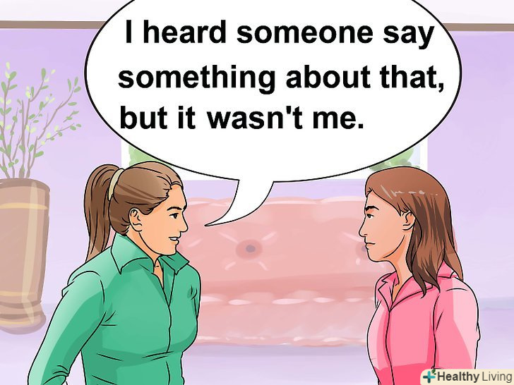 Спокійно або жартівливо відмахуйтеся від чуток. якщо ви знаєте, що співробітник розпускає чутки про вас або навіть наклеп, то спробуйте просто жартувати. [8]- Не потрібно злобно реагувати на плітки, щоб не погіршити ситуацію і не викликати відповідні дії.