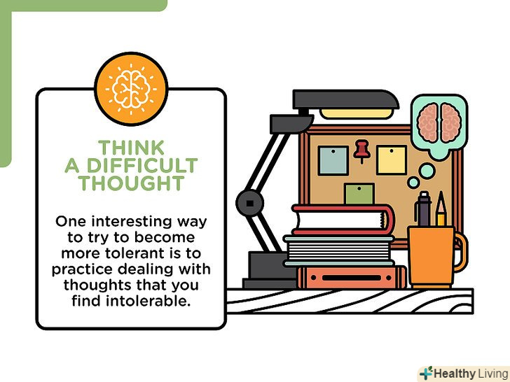Навчіться міркувати над складними питаннями. Один з цікавих способів розвинути в собі терпимість – натренуватися міркувати на теми, які ви терпіти не можете. Це техніка, якою користуються психологи, і вона дуже ефективна в питаннях нетерпимості. Ця техніка грунтується на принципі того, що утримувати думку на складній темі саме по собі непросто, так що навчившись цьому, ви навчитеся і справлятися зі складними ситуаціями.- Нам властиво уникати і тікати від складних тем, і це призводить до нетерпимості, нетерплячості і невмінні співчувати іншим.