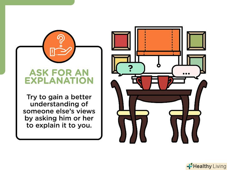Попросіть пояснити слова або вчинки. якщо ви розмовляєте з людиною і чуєте від нього щось, що вам складно прийняти, можна спробувати зрозуміти його погляд, не проявляючи при цьому агресії або нетерпимості. Постарайтеся якомога краще розібратися в поглядах іншої людини, ставлячи йому питання.- Можна сказати щось на кшталт: «добре, Розкажи мені про це детальніше. Чому ти так думаєш?»