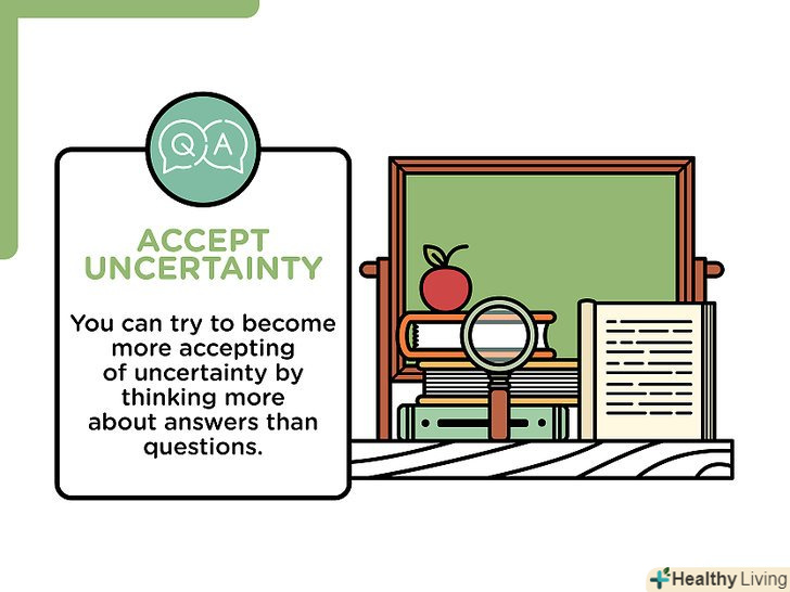 Навчіться приймати невизначеність. згідно з дослідженнями, нетерпимість по відношенню до неоднозначності або нездатність сприймати невизначеність – це ключові риси характеру найменш терпимих людей. Проведене на національному рівні дослідження показало, що країни, де люди більш сприйнятливі до ситуацій невизначеності, демонструють більше прийняття по відношенню до розбіжностей, терпимості до відхилень, більш схильні до ризику і більш позитивно налаштовані до людей в цілому. [6]- Ви можете спробувати розвинути у себе сприйнятливість до невизначеності, намагаючись більше думати про відповіді, ніж про питання.