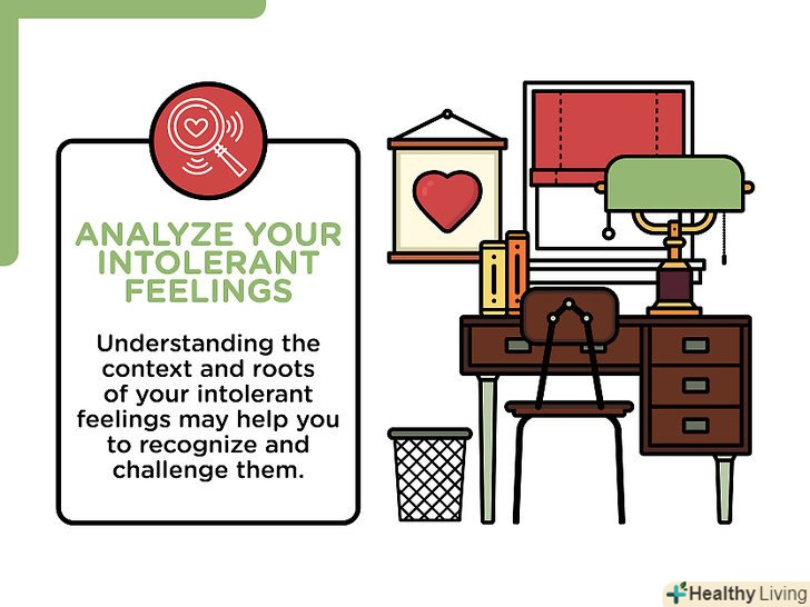 Проаналізуйте, які почуття викликає в вас нетерпимість. розібравшись в контексті і коренях своїх пов'язаних з нетерпимістю почуттів, ви навчитеся усвідомлювати їх і навіть боротися з ними. Згадайте, в яких ситуаціях ви різко критикували інших людей. Можливо, вас виховали з думкою про те, що існують другосортні люди, а може бути, у вас був негативний досвід? Проаналізуйте, звідки в вас беруться негативні почуття по відношенню до певної групи людей.- Наприклад, можливо, вас виховали в сім'ї, де було прийнято зневажливо відгукуватися про людей певної раси або релігії. Або у вас був негативний досвід спілкування з людиною іншої раси або релігії, і це досвід ліг в основу ваших уявлень про таких людей.